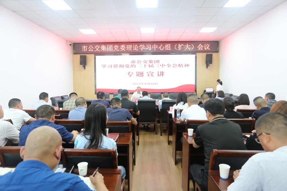 9月23日,在市公交集團(tuán)學(xué)習(xí)貫徹黨的二十屆三中全會精神宣講報(bào)告會上,集團(tuán)黨委書記、董事長卞軍虎以深化國資國企改革為切入點(diǎn)作宣講報(bào)告。集團(tuán)各黨支部書記、黨員干部等44人參加會議。