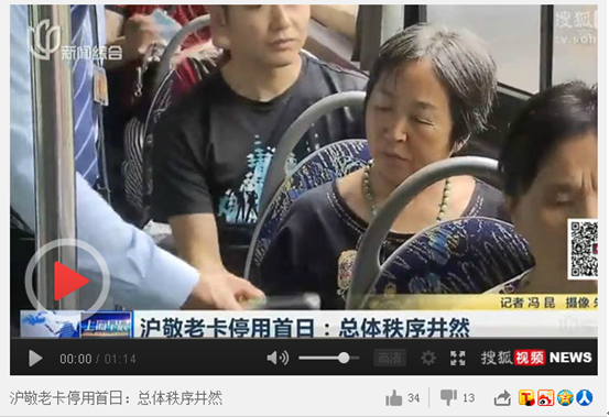 6月26日起,本市停止實(shí)行70歲以上老人持“敬老卡”免費(fèi)乘坐公交車及地鐵。