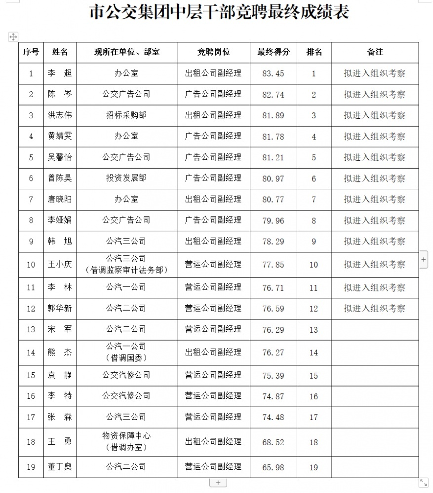 附件:市公交集團(tuán)中層干部競聘最終成績表