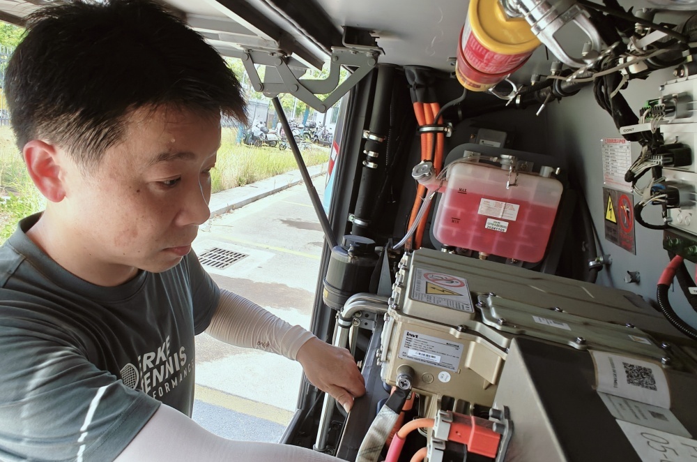 大太陽(yáng)底下,他仔細(xì)檢查每一處,就為了保障公交車能順順當(dāng)當(dāng)跑。
