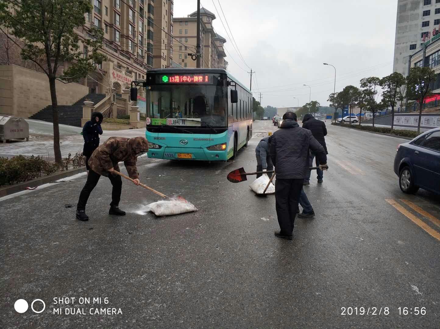 大年初四,降下風雪,荊門公交集團為保障公交平安運行,公司領(lǐng)導的帶頭,放下了團年的飯桌上的碗筷,換成鐵鍬加入到除雪隊伍中來。他們不懼嚴寒,從下午13點堅持到18點,完成了福壽居、房產(chǎn)局、天鵝路等路面撒鹽除冰任務(wù)。