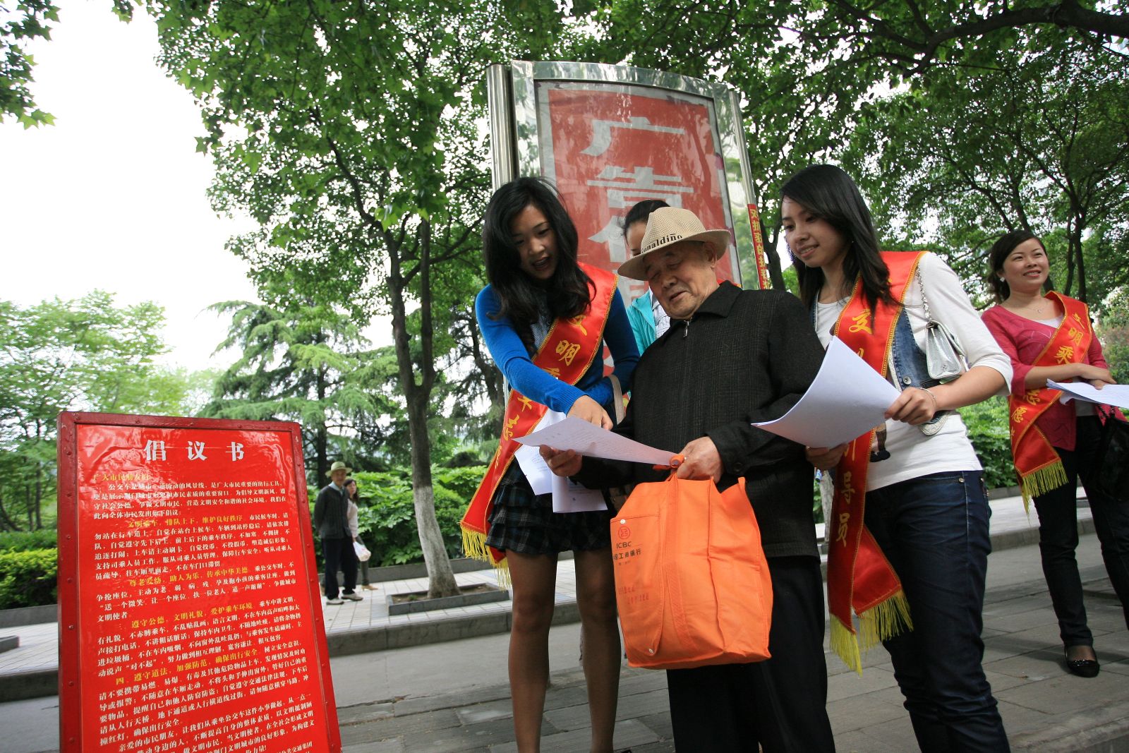 活動(dòng)中,荊門公交集團(tuán)10名佩戴“文明乘車志愿者”綬帶的引導(dǎo)員,以城區(qū)的5個(gè)乘客流量大的公交站點(diǎn)為重點(diǎn),沒崗定2名志愿者,3名管理人員,通過發(fā)放寫有“文明乘車,排隊(duì)上下,維護(hù)良好秩序;尊老愛幼,助人為樂,傳承中華美德;遵守公德,文明禮貌,愛護(hù)乘車環(huán)境;遵守道法,加強(qiáng)防范,確保出行安全”四條要求的倡議書,引導(dǎo)市民排隊(duì)、讓座,開展維護(hù)、示范、引導(dǎo)、勸阻等志愿服務(wù)工作,維持公交候車乘車秩序,努力形成“有序排隊(duì)、依次上車、尊老愛幼、文明禮讓”的良好氛圍。