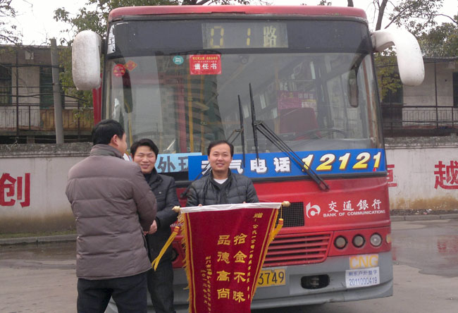 2月15日,荊門市銀都礦業(yè)有限公司總經(jīng)理鄒詩發(fā)等一行3人專程來到市公交一公司,向一公司負(fù)責(zé)人張忠林贈送了一面寫著“拾金不昧、品質(zhì)高尚”的錦旗,專門感謝1路駕駛員李想拾到其遺失在公交車上15萬貨款。