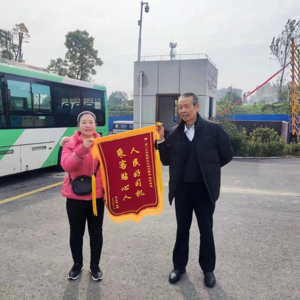 11月12日上午11時,市民付先生將一面寫著“人民好司機 乘客貼心人”的錦旗送到三公司,以感謝10路駕駛員寇洋拾金不昧的高尚品德。